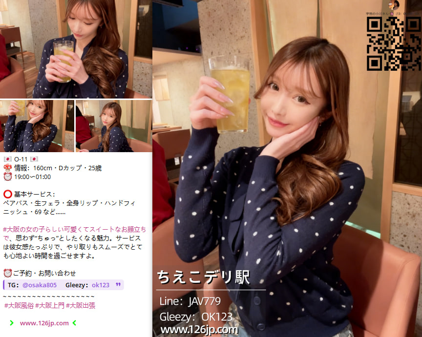 はじめまして、ちえこです こんにちは~! 日本でみなさんに楽しい時間をお届けしているちえこです♡ ただの紹介じゃなくて、「会えてよかった」と思える女の子をおすすめしたいんです 東京・大阪どちらでも、かわいい子、スタイル抜群の子、やさしいお姉さん系… あなたにぴったりの子を探してご紹介します✨ サービスエリア 池袋|新宿|銀座|吉原|六本木|難波|梅田|天王寺 その他の地域は気軽にご相談くださいね♪ 初めての方も安心 完全予約制&秘密厳守 記録なし・現金OK・オンライン匿名予約も可能 ホテルやご自宅でリラックスして楽しめます♡ 忙しい毎日だからこそ、ちょっと特別な時間を一緒に作りませんか? ご予約・お問い合わせ LINE:jav779、 TG:Japan72 公式 →https://126jp.weebly.com